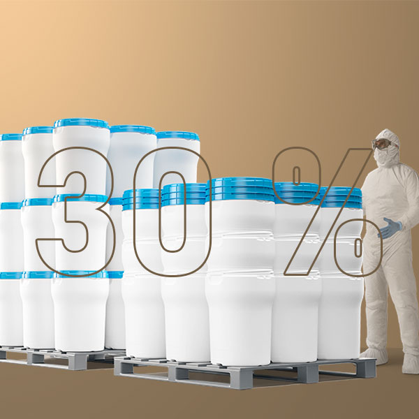 ECO LITE Fässer kombinieren ein geringeres Gewicht mit einem intelligenten, konischen Design, das es ermöglicht, mehr leere Fässer pro Palette zu stapeln. Das Ergebnis: höhere Paletteneffizienz, geringere Transportvolumina und ein reduzierter ökologischer Fußabdruck entlang Ihrer Lieferkette. Mehr erfahren